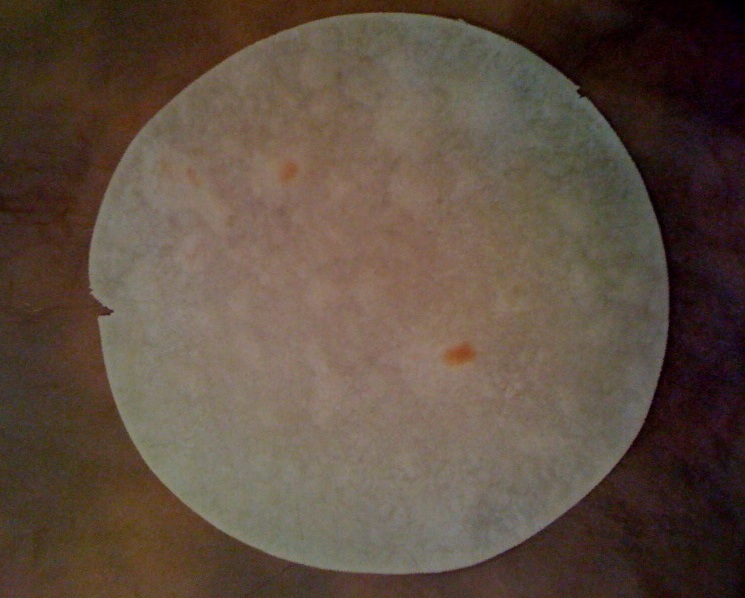 Form dough into balls with 1/3-1/2 cup of dough about the size of an ice cream scoop. Press into a flat pancake dusted underneath with some flour. Roll out from center between two pieces of parchment paper with rolling pin–dusting if necessary to keep from sticking to paper. Keep rolling until it is as flat as a tortilla or wrap (about 10 inches round circle.) At this point you can bake it or if you want it to be a perfect circle, put a 9 inch plate or bowl upside down over the dough and trace the edge of the plate/bowl with a sharp paring knife to form a circle shape.
