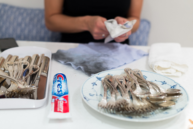 And then, in the spring before I wanted to polish the silver for my husband’s birthday, I found a post on The Daily Green that you can polish silver with toothpaste! It’s hard to believe this simple solution to tarnished silver would work but it does. Crest worked very well and kids can help with the polishing.